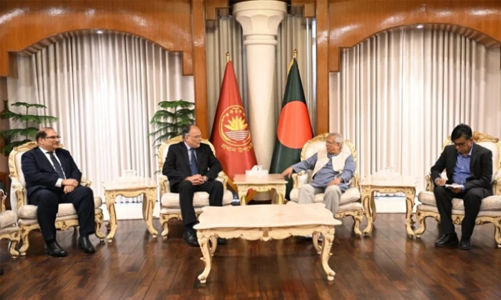 পাকিস্তানের পরিকল্পনা, উন্নয়ন ও বিশেষ উদ্যোগ বিষয়ক মন্ত্রী আহসান ইকবাল চৌধুরী মঙ্গলবার যমুনায় প্রধান উপদেষ্টা মুহাম্মদ ইউনূসের সঙ্গে সৌজন্য সাক্ষাৎ ক