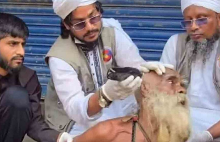 জোর করে একজন বাউলের চুল কেটে দেয়া হচ্ছে। ছবি: ফাইল।
