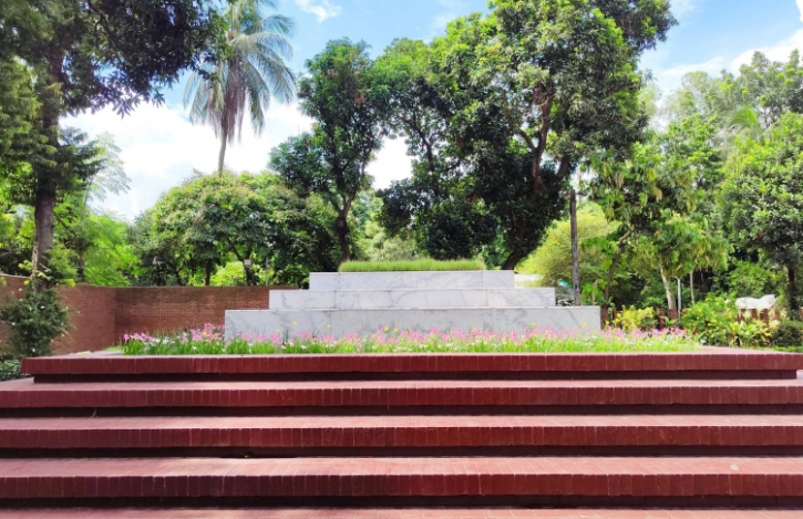 ঢাকা বিশ্ববিদ্যালয়ের কেন্দ্রীয় মসজিদের পাশে জতীয় কবি কাজী নজরুল ইসলামের সমাধি। এই চত্ত্বরেই শায়িত থাকবে ওসমান হাদির মরদেহ। ছবি: সংগৃহীত।