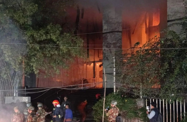 ওসমান হাদির মৃত্যুর খবরে বিক্ষোভকারীরা ডেইলী স্টার ও প্রথম আলো অনলাইন অফিসে আগুন দেয় । সাহায্য চেয়েও না পাওয়ার অভিযোগ করেছে পত্রিকা দুটি। ছবি: সংগৃহীত