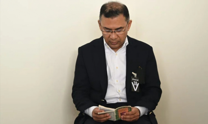 সাবেক প্রধানমন্ত্রী ও বিএনপি চেয়ারপার্সন খালেদা জিয়ার মরদেহের পাশে বসে কোরআন তিলাওয়াত করেন ছেলে তারেক রহমান।