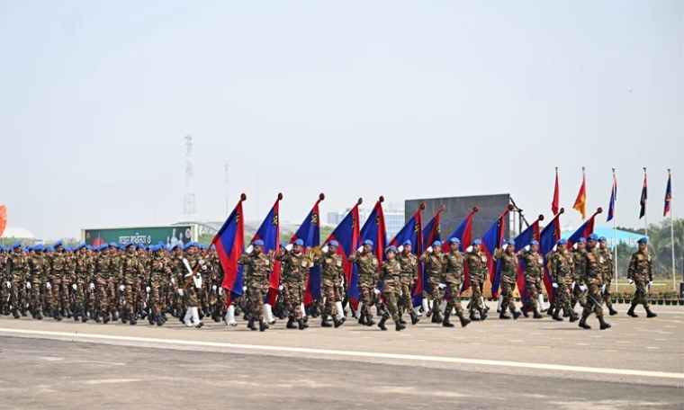 পরে মার্চপাস্ট শুরু হয়। এতে প্রথমে থাকে বিভিন্ন পতাকাবাহী তিনটি দল বা কন্টিনজেন্ট। এরপর পর্যায়ক্রমে রাষ্ট্রপতিকে সালাম দিতে এগিয়ে যেতে থাকে সেনাবাহিনীর বিশেষায়িত ইউনিট প্রেসিডেন্ট গার্ড রেজিমেন্ট, সাজোয়া রেজিমেন্ট কন্টিনজেন্ট, ইস্ট বেঙ্গল কন্টিনজেন্ট, বাংলাদেশ ইনফ্যান্টারি রেজিমেন্ট, আর্টিলারি কন্টিনজেন্ট, এয়ার ডিফেন্স কন্টিনজেন্ট, ইঞ্জিনিয়ারস কন্টিনজেন্ট, সিগনালস কন্টিনজেন্ট, সার্ভিসেস কন্টিনজেন্ট।