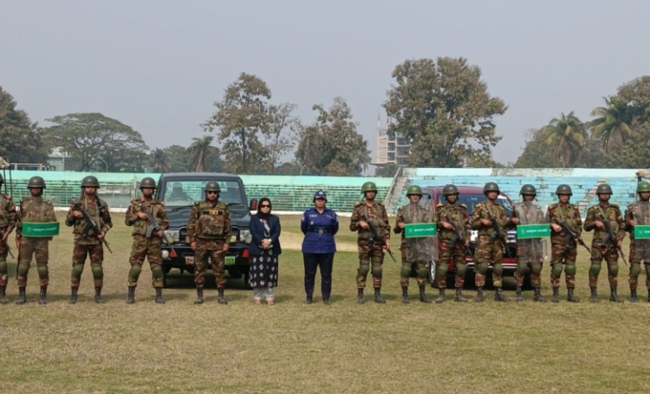 রোববার দুপুরে জেলা শহরে উপজেলা প্রশাসন, সেনাবাহিনী, পুলিশ, বর্ডার গার্ড বাংলাদেশ (বিজিবি) ও র্যাবের সমন্বয়ে ওই নির্বাচনী মহড়া অনুষ্ঠিত হয়।