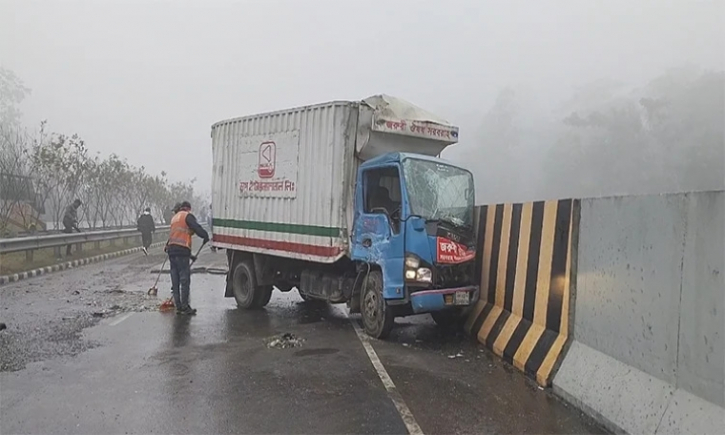 শিবচর হাইওয়ে থানা পুলিশ সূত্রে জানা গেছে, খুলনা থেকে ছেড়ে আসা ঢাকাগামী দ্রুতগামী যাত্রীবাহী বাস টুংগীপাড়া এক্সপ্রেস ঘন কুয়াশার কারণে বন্দরখোলা এলাকায় সামনে থাকা একটি ওষুধ কোম্পানির কাভার্ড ভ্যানকে সজোরে ধাক্কা দেয়। এ সময় পেছন থেকে আসা আরেকটি মিনি ট্রাকও দুর্ঘটনাকবলিত বাস ও কাভার্ড ভ্যানকে ধাক্কা দেয়। এতে বাসে থাকা অন্তত ১০ জন যাত্রী আহত হন। পরে স্থানীয়দের সহায়তায় আহতদের উদ্ধার করে প্রাথমিক চিকিৎসা দেওয়া হয়। আহতদের মধ্যে কয়েকজনের অবস্থা গুরুতর বলে জানা গেছে।