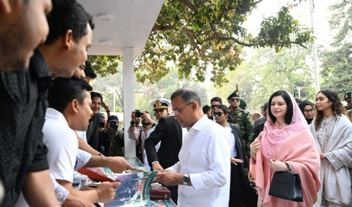 প্রধানমন্ত্রী তারেক রহমান আজ বিকেলে বাংলা একাডেমি প্রাঙ্গণে অমর একুশে বইমেলা ২০২৬ এর উদ্বোধন করেন। ছবি : পিএমও