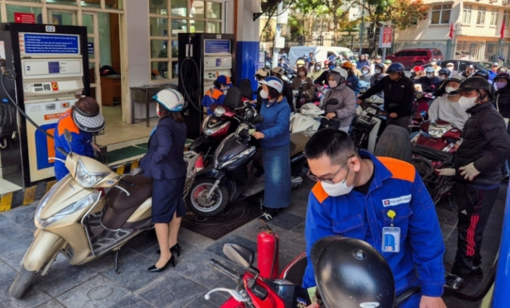 তেলের জন্য ভিয়েতনামে মোটর বাইকারদের দীর্ঘ লাইন। ছবি: সংগৃহীত।