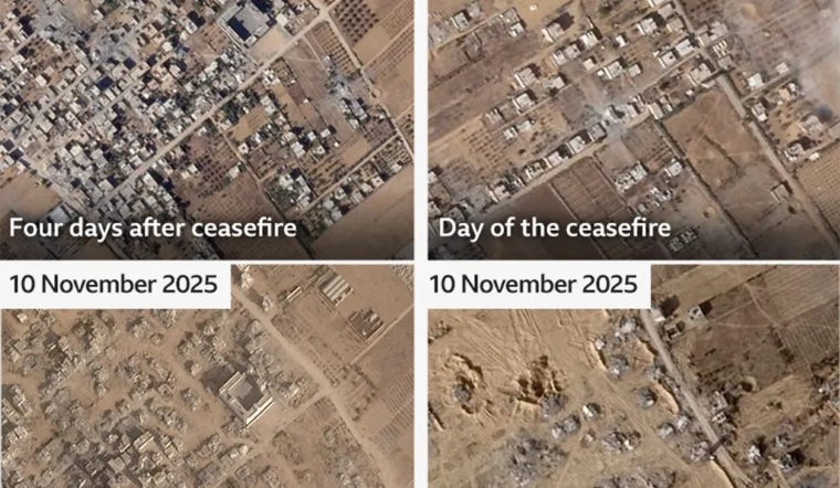 যুদ্ধবিরতি শুরু হওয়ার পর থেকে ইসরায়েল গাজার সেই এলাকাগুলোতে ১,৫০০টিরও বেশি ভবন ধ্বংস করেছে, যা তাদের নিয়ন্ত্রণে রয়েছে। ১০ অক্টোবর হামাসের সাথে যুদ্ধবিরতি শুরু হয়েছিল। বিবিসির যাচাইকরণ (BBC Verify) দ্বারা পর্যালোচনা করা স্যাটেলাইট ছবিতে এই তথ্য দেখা যায়।