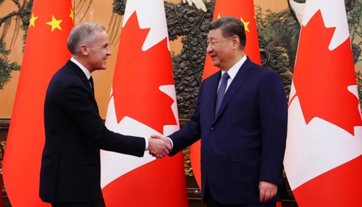 কানাডার প্রধানমন্ত্রী মার্ক কার্নি শুক্রবার বেইজিংয়ের গ্রেট হল অফ দ্য পিপলে চীনা রাষ্ট্রপতি শি জিনপিংয়ের সাথে সাক্ষাৎ করেন। ছবি: এনপিআর-এর সৌজন্যে।